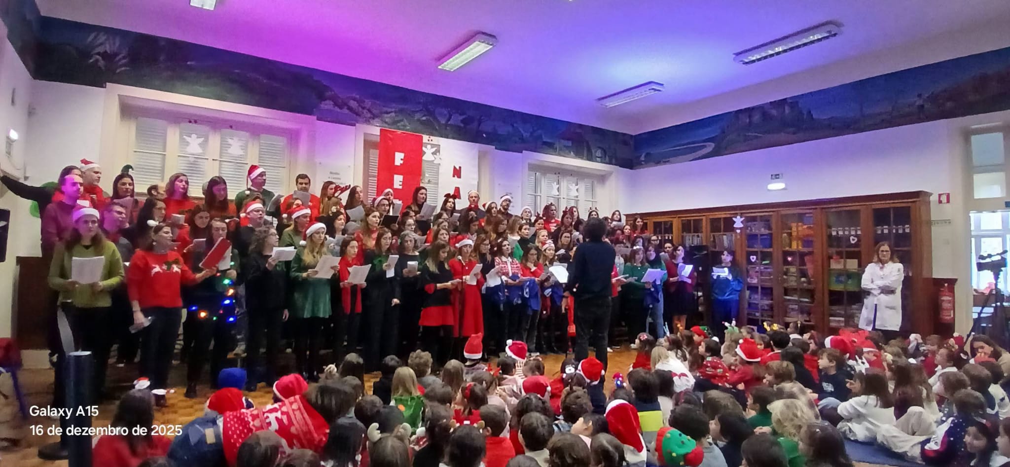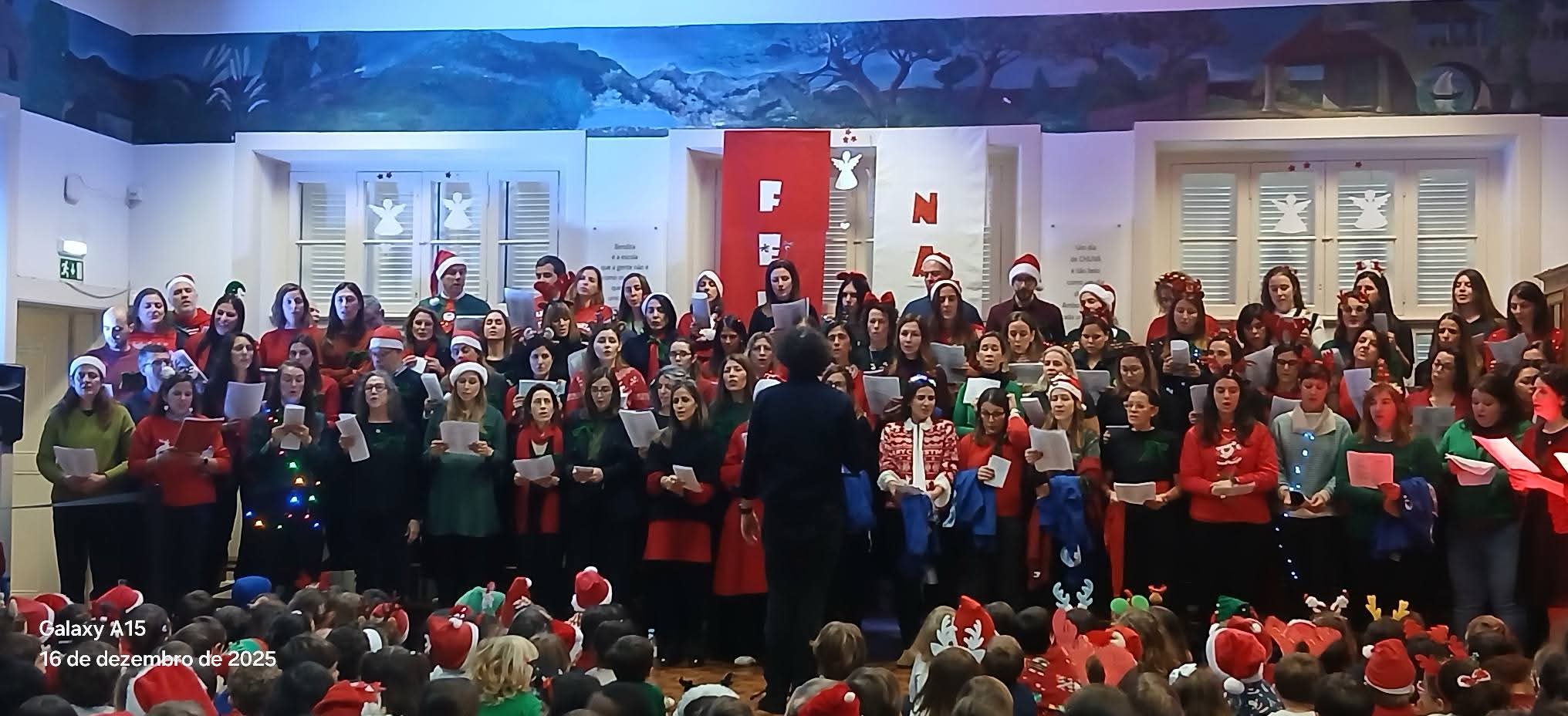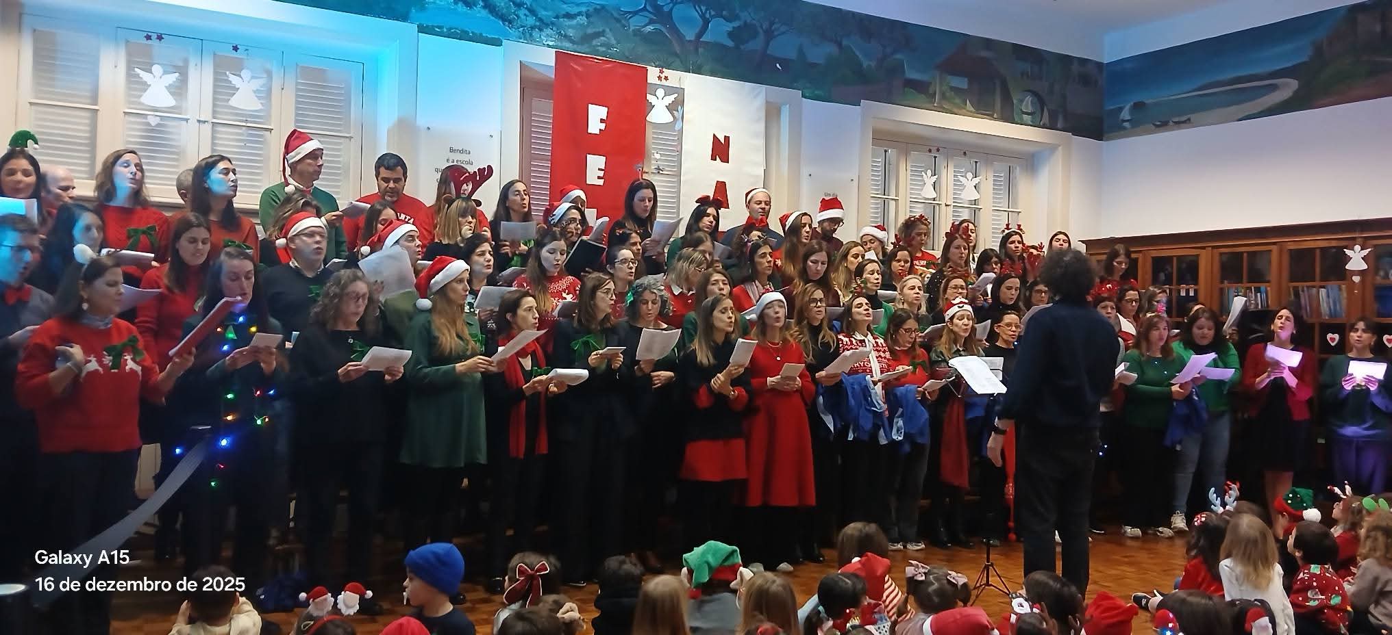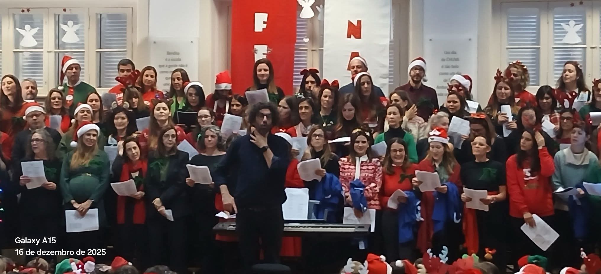 O salão do 1.º Jardim-Escola João de Deus encheu-se de emoção, afeto e partilha com a atuação do Coro de Pais, num momento verdadeiramente especial para toda a comunidade educativa.