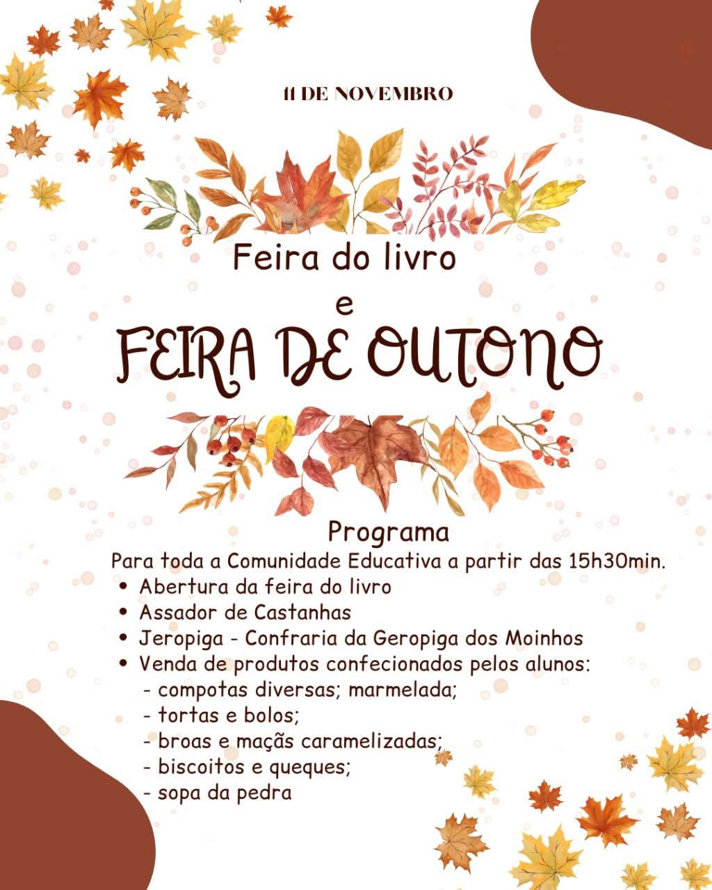O 1º Jardim-Escola João de Deus tem o prazer de convidar toda a comunidade educativa a participar na Feira do Livro e na Feira do Outono, eventos que visam promover o gosto pela leitura, a valorização das tradições e o convívio entre todos.