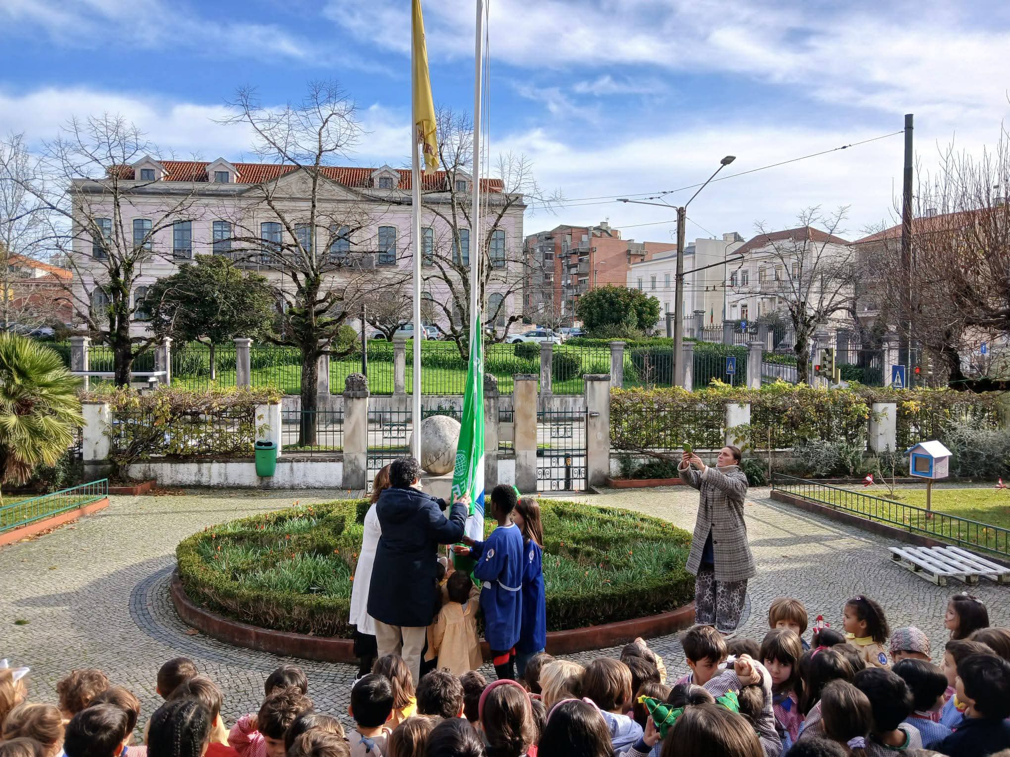 O hastear da Bandeira Eco-Escolas representa o empenho da escola na adoção de comportamentos sustentáveis, na sensibilização ambiental e na formação de cidadãos conscientes e ativos na proteção do planeta.
